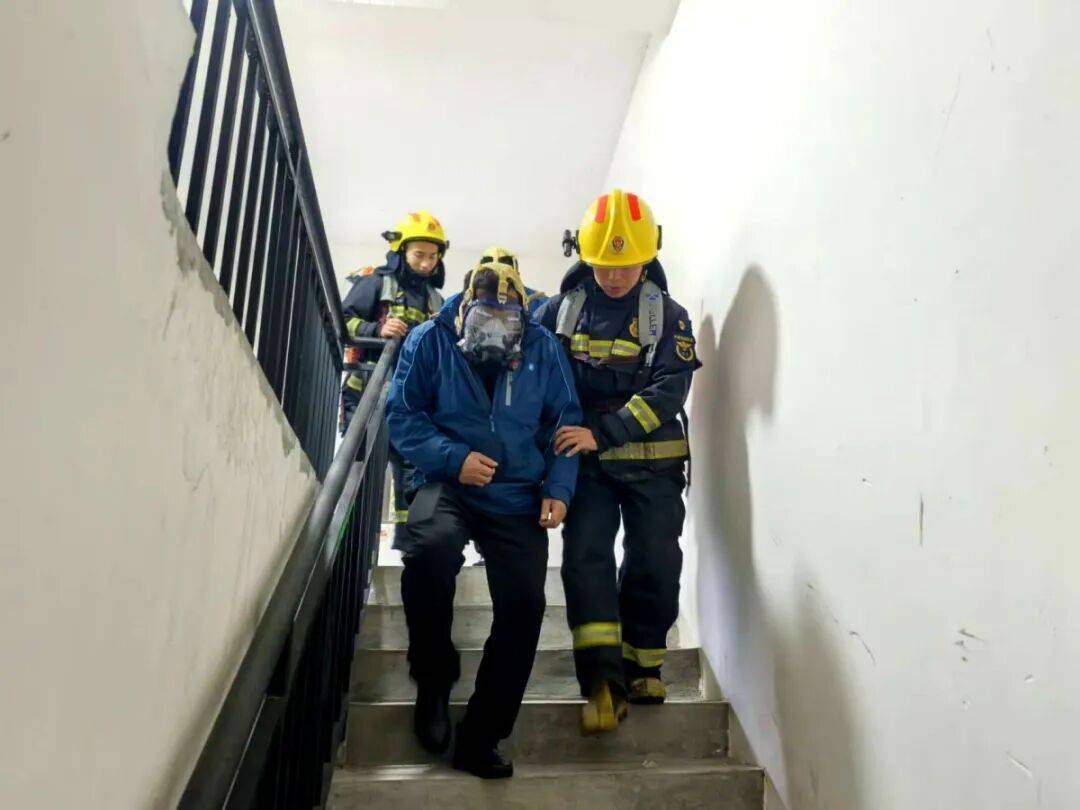其中,侦查小组联合物业管理人员前往消防控制室,通过监控系统精准掌握火情蔓延态势,同步操控消防泵、排烟风机、防火卷帘等设施;灭火小组一方面铺设水带深入建筑内部压制着火点,另一方面利用云梯车水炮对着火点周边区域喷水降温•,构筑火势蔓延防线;搜救小组则按照着火建筑图纸结构,通过消防控制室指引◁□●,逐层逐户搜救被困人员○◁★。经过30分钟的紧张处置,现场火势被成功控制▼○,3名被困人员通过空气呼吸器防护、云梯车转运等方式被安全救出。