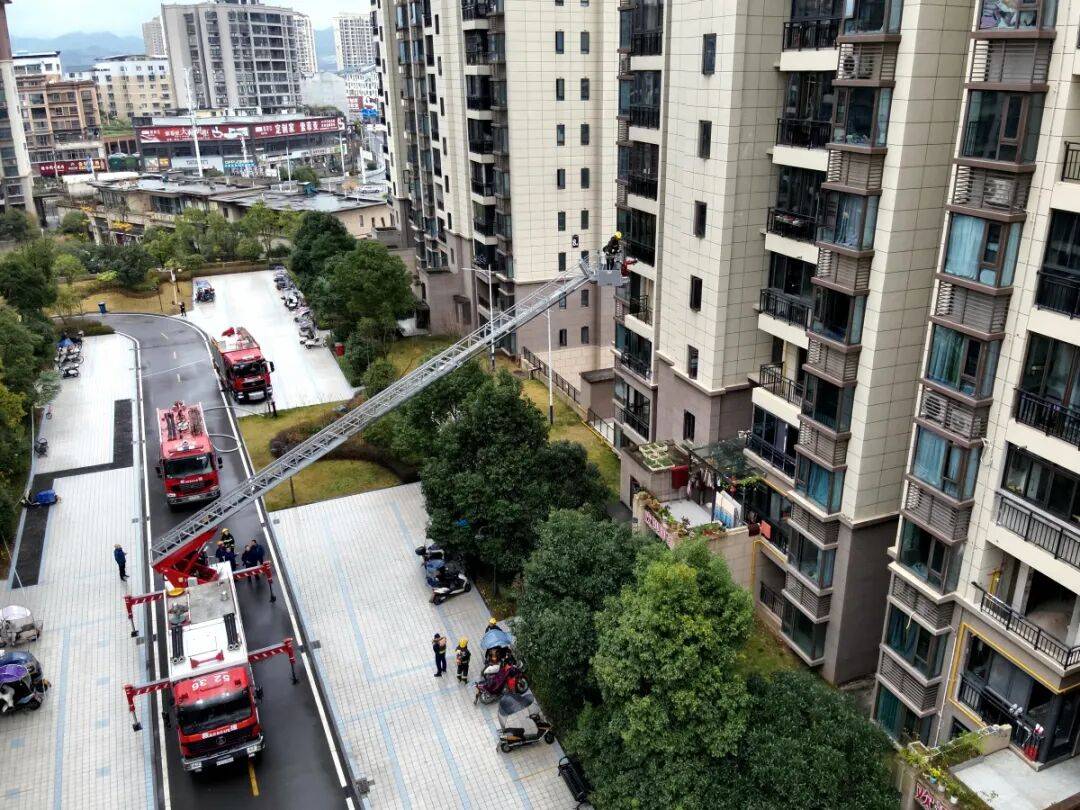 为进一步提高辖区高层建筑灭火救援能力,有效降低火灾对人民财产造成的危害12月23日▪,余庆县消防救援大队联合多部门在县城某小区开展高层建筑灭火救援实战演练。