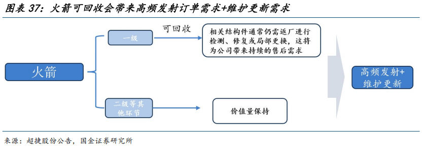 无需担心火箭可回收影响订单•◁。1)火箭可回收后▷=▷,发射成本降低,将带来密集发射任务,火箭公司的结构件需求或将大幅增长;2)一子级火箭回收后,相关结构件仍需要返厂检测、修复或局部更换,会带来售后需求。