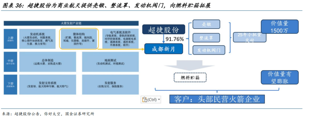 持续拓宽能力边际,单发配套价值量有望膨胀…○。根据超捷股份投资者活动记录表,公司或将进一步拓展产品矩阵,向燃料贮箱拓展,单火箭价值量有望扩张…▪。