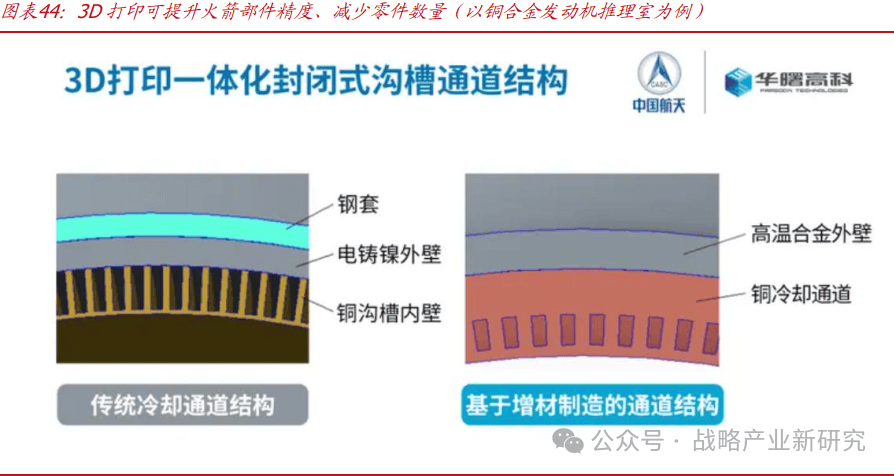 3D 打印技术已成为火箭发动机等部件的重要生产方式★。传统发动机的零件数量动辄成千上万▲-…,零件之间的组装通常采用焊接、铆接、螺栓连接等多种方式,这种方案导致的问题就在于制造流程长、误差累积大、质量隐患多、重量增加多等。而且部分零件还存在结构复杂△…☆、材料加工难的问题,对技艺高超的工人依赖度也极大。3D 打印利用逐层堆积的原理,能够实现任意复杂构件成形与多材料一体化制造,突破了传统制造技术对结构尺寸-…、复杂程度、成形材料的限制◁,同时利用 3D 打印可以制作出符合设计标准和使用要求的高精密零件▲▼•。