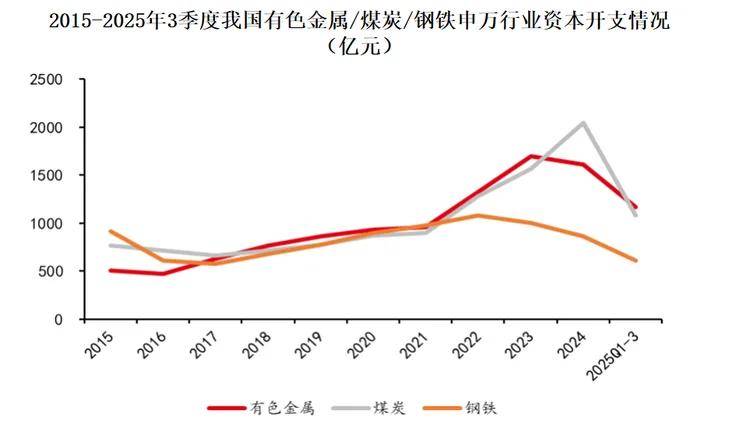 矿产资源是经济社会发展的重要基石▽•◁,近年来国家持续推动矿业绿色转型与“无废矿山”建设,叠加原矿品位下降的行业趋势,进一步倒逼企业采用高效资源回收技术。压滤机作为该领域的关键配套装备,市场需求随之持续提升○…▷。与此同时,我国矿物及加工主要行业的资本开支整体呈上涨态势,数据显示○,2024年有色金属、煤炭、钢铁行业资本开支分别达到1613亿元、2043亿元、866亿元□□;2025年前三季度▪…◇,三大行业资本开支依次为1169亿元、1086亿元◆、609亿元…,除煤炭行业因为煤价影响资本开支有所走弱外☆■,有色金属、钢铁资本开支仍维持较高水平。