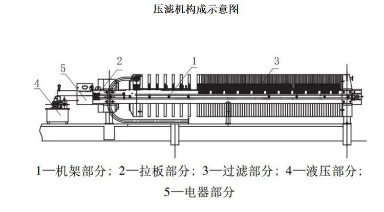 压滤机属于过滤与分离机械,是将液体与固体颗粒的混合物进行分离的设备-●△。其工作原理是通过压缩滤板•,将液体通过滤布或滤网进行过滤,从而分离出其中的固体和液体。压滤机一般由机架部分、拉板部分、过滤部分、液压部分和电器部分组成。