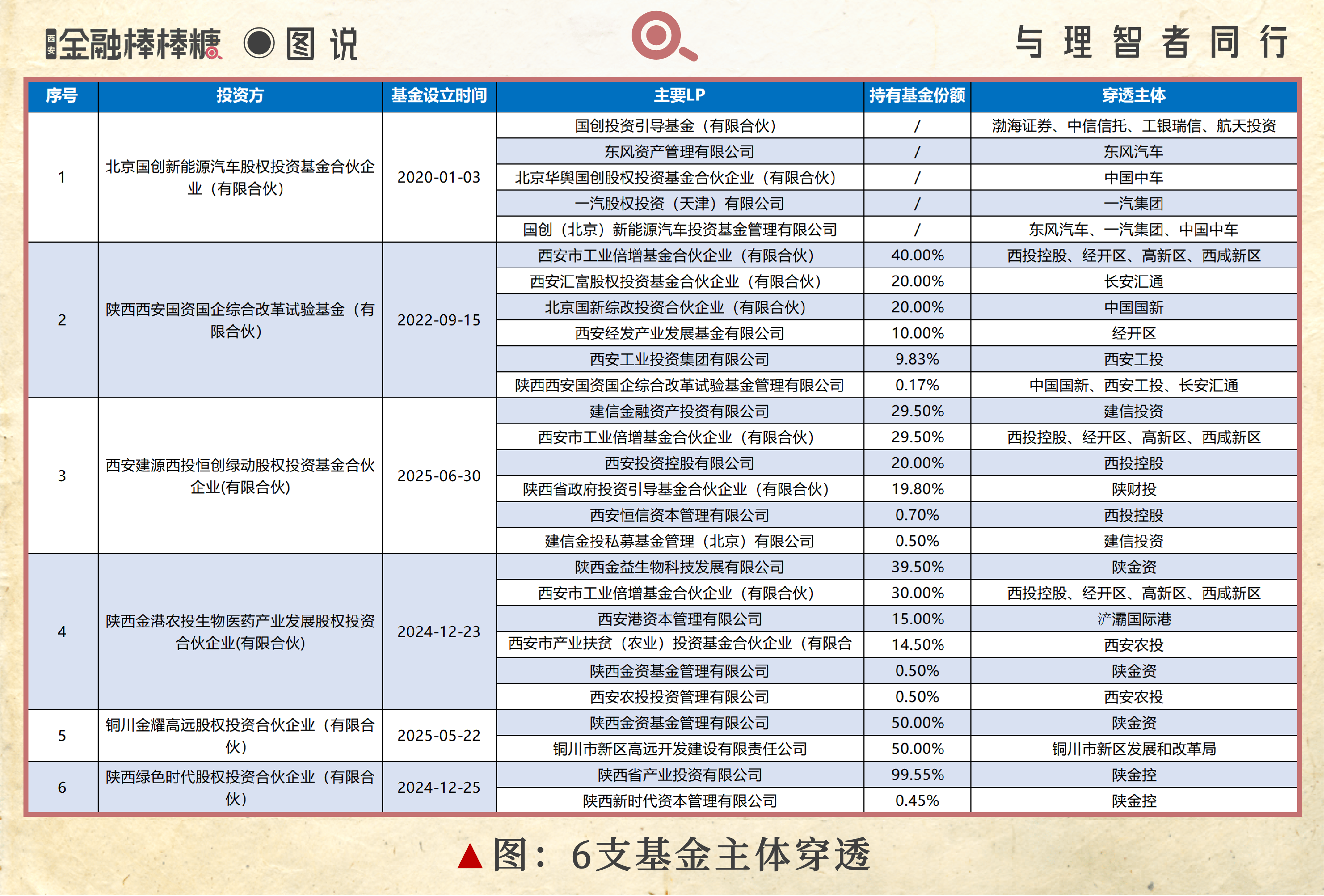 如下图所示,综改基金、恒创基金、陕西金港、铜川金耀与绿色时代基金管理人分别为西安综改基金管理公司、西投控股旗下恒信资本、陕西金资基金与新时代资本▲◁。