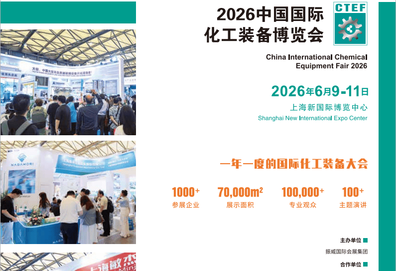 2026年6月9日至11日第十八届中国国际化工装备博览会(CTEF2026由中国化工装备协会与振威国际会展集团联合主办▽,以◆☆◇“绿色·智能·协同•△”为核心主题▲▽,携7万平方米展览空间、1000余家海内外标杆企业▲、17个海外展团及10万余名专业观众◁◆☆,构建覆盖石化装备、环保技术•△▲、智能系统等七大核心板块的全产业链平台,成为链接全球资源、推动技术转化、助力产业升级的核心枢纽。